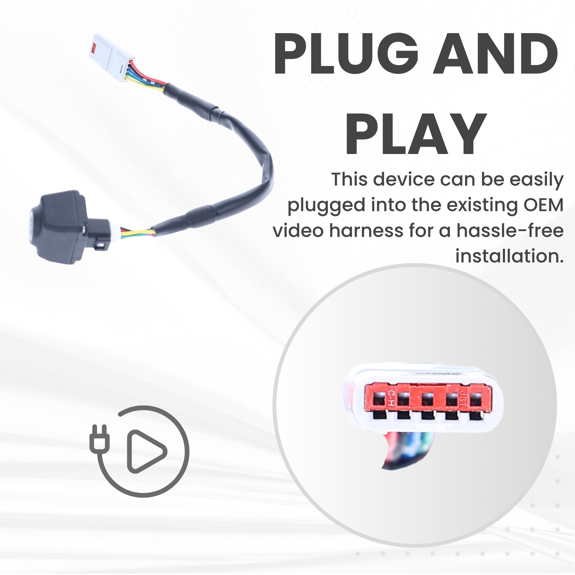 - {Plug and Play} This device can be easily plugged into the existing OEM video harness.